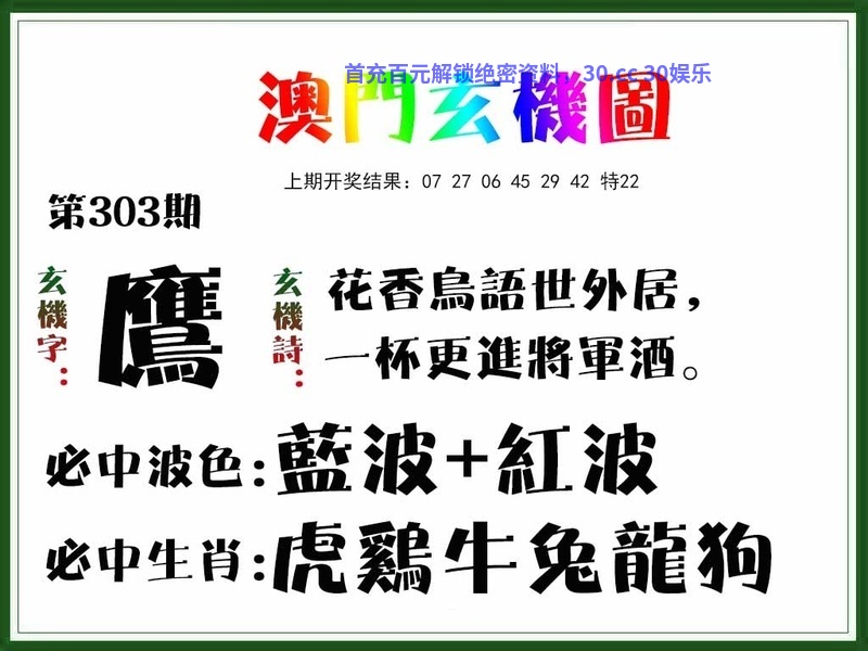 302期天【猪兔马】地【羊狗鸡虎】开:猴22准